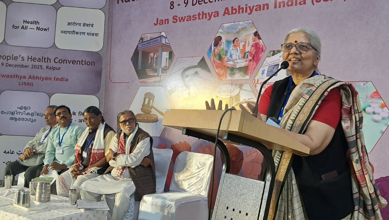 जन स्वास्थ्य अभ्यिान इंडिया के बैनर तले रायपुर में 8-9 दिसंबर को आयोजित दो दिवसीय जन स्वास्थ्य सम्मेलन में 19 राज्यों से आए लगभग 350 स्वास्थ्य नेतृत्वकर्ताओं, जन आंदोलनों के प्रतिनिधियों, एक्टिविस्ट्स और समुदाय संगठनों ने सहभागिता की। सम्मेलन का उद्देश्य गंभीर होती स्वास्थ्य चुनौतियों को नीतिगत प्राथमिकता में लाना, सार्वजनिक स्वास्थ्य व्यवस्था को मजबूत करने की मांग को आगे बढ़ाना और जमीनी स्तर पर जन स्वास्थ्य आंदोलन को रणनीतिक रूप से सुदृढ़ करना था।