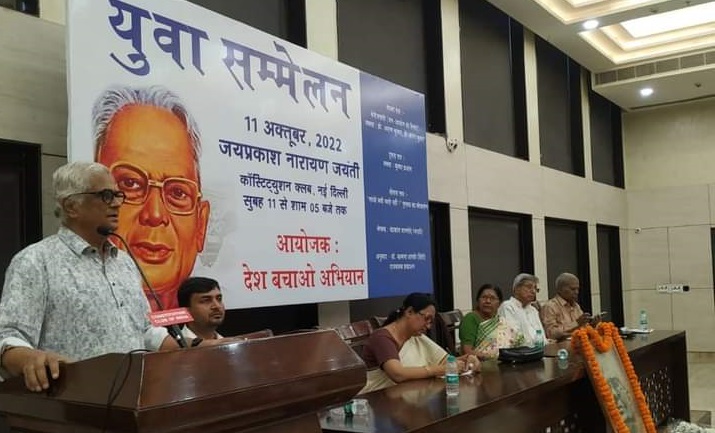 सम्मेलन के दूसरे सत्र में जेपी आंदोलन में अग्रणी रहे, प्रसिद्ध गांधीवादी चिंतक तथा गांधी शांति प्रतिष्ठान के अध्यक्ष कुमार प्रशांत ने अपने विस्तृत संबोधन में जेपी के जीवन, चिंतन और देश के स्वतंत्रता आंदोलन से लेकर स्वतंत्र भारत में लोकतंत्र की रक्षा में उनके योगदान का विस्तार से स्मरण किया। उन्होंने जयप्रकाश जी के अमेरिका से अध्ययन कर लौटे मार्क्सवादी रूप से लेकर समाजवादी तथा अंततः आजादी के बाद गांधीवादी सर्वोदयी की चिंतन यात्रा का विस्तृत चर्चा की। साथ ही प्रशांत जी ने जेपी की पत्नी प्रभावती जी के द्वारा गांधीजी के प्रभाव में ब्रह्मचर्य व्रत लेने और अंततः युवा जयप्रकाश के द्वारा उसका सम्मान कर जीवन भर निभाने में प्रभावती जी का साथ देने का उल्लेख किया।