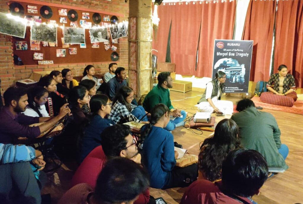 भोपाल, 4 दिसंबर । युवाओं का अनौपचारिक समूह यंगशाला रूबरू में भोपाल गैस त्रासदी के 38 सालों के दर्द और संघर्ष की कहानियों से युवा रूबरू हुए। चर्चा में पूर्व हेड मेडिको लीगल इंस्टीट्यूट, मध्य प्रदेश डॉ. डी के सथपथी और भोपाल गैस पीड़ितों के साथ काम करने वाली सामाजिक कार्यकर्ता रचना ढींगरा ने युवाओं से बात की। इस मौके पर वरिष्ठ पत्रकार एवं सामाजिक कार्यकर्त्ता राकेश दीवान भी शामिल हुए।