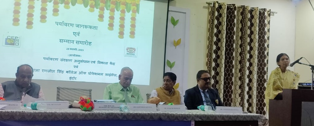 उद्योगपति, समाज सेवी एवं सीईपीआरडी के उपाध्‍यक्ष डॉ. अनिल भंडारी ने पर्यावरण के क्षेत्र में व्याप्त चुनौतियों पर प्रकाश डाला।  उन्‍होंने कहा कि शहर में वायु प्रदूषण को कम करने के लिए चौराहों पर वाहन के इंजन बंद करने का प्रयोग सफल रहा। इससे वातावरण शुध्द हुआ। महाराजा रणजीतसिंह कॉलेज आफ प्रोफेशनल साइंसेस के प्राचार्य डॉ. आनंद निघोजकर ने शहर की जैव विविधता को संरक्षित करने के प्रयासों की जानकारी दी।