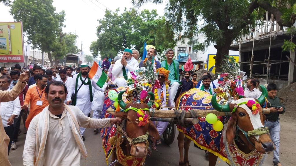 जन संसद में पहुंचने से पहले बडवानी शहर में एक रैली का आयेाजन किया गया जिसमें बैलगाडी पर राकेश टिकैत, योगेंद्र यादव, डॉ सुनीलम, मेधा पाटकर बैठकर आमजन के बीच पहुंचे।