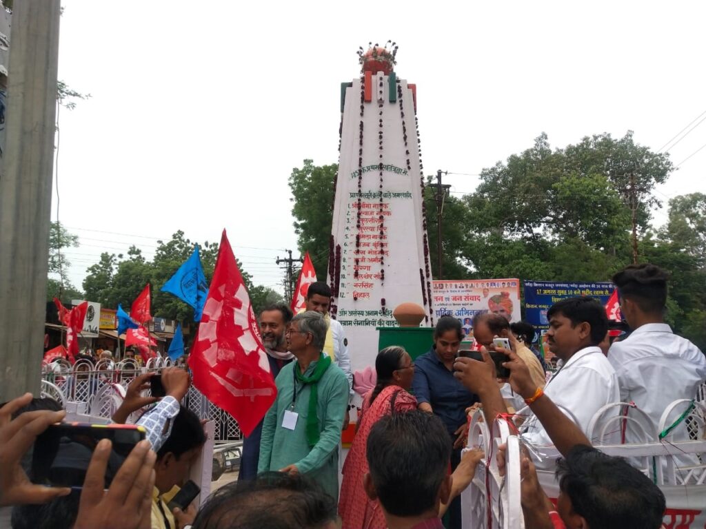बडवानी । नर्मदा बचाओ आंदोलन के 36 वर्ष पूर्ण होने पर बडवानी में आज किसान मजदूर जन संसद का आयोजन किया गया। जिसमें मध्य प्रदेश ,गुजरात और महाराष्ट्र के हजारों किसानों ने शिरकत की। वहीं नर्मदा घाटी के गांव गांव से हजारों लोग बड़वानी पहुंचे। इस किसान मजदूर जन संसद में अतिथि के रूप में किसान मोर्चा के नेता राकेश टिकैत, योगेंद्र यादव, हन्नान मोल्ला, डॉ सुनीलम, तेजिंदर सिंह विर्क, मेधा पाटकर ने भरी बारीश में मंच संभाला। शहीद भगत सिंह की भांजी गुरजीत कौर, पूनम पंडित सहित विभिन्न किसान और जनांदोलन के साथी भी इसमें सम्मिलित हुए।