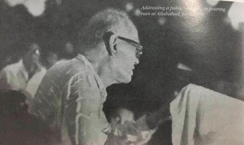 जून 1974 में इलाहाबाद के टंडन पार्क में ‘सम्पूर्ण क्रांति’ आंदोलन के समर्थन में आयोजित हुई छात्रों की विशाल सभा में बहत्तर-वर्षीय जेपी ने मूसलाधार बरसात के बीच भी अपने उद्बोधन को जारी रखा था और श्रोता भी शांत भाव से लोकनायक के कहे एक-एक शब्द के साथ भीगते रहे थे। मेरा लिया जेपी का उस समय का चित्र आज की तरह तब वायरल नहीं हो पाया था। परिस्थितियाँ तब भिन्न थीं। उस समय न मोबाइल था, न टीवी चैनल्स थे और न ही सोशल मीडिया था। इस सबके बावजूद जेपी की ‘सम्पूर्ण क्रांति’ सफल हो गई।