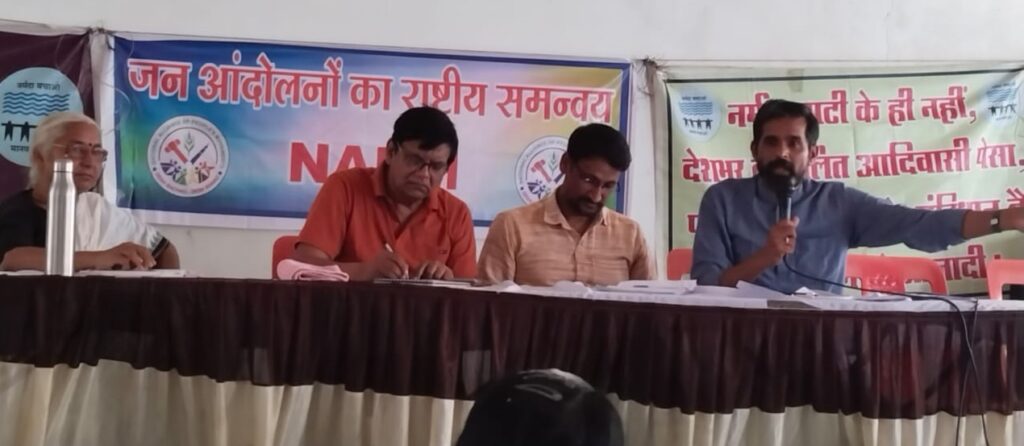 जन आंदोलन के राष्ट्रीय समन्वय (एनएपीएम) के मुद्दों जल, जंगल, जमीन, विस्थापन, विकास, संघर्ष निर्माण अधारित सम्मेलन के सत्र में सामूहिक चर्चा की गई, जिसमें एनएपीएम के सुश्री मेधा पाटकर ने सदन में आये सुझाव, राजनीतिक दलों से समन्वय, मैदानी एवं कानूनी संघर्ष आदि मुद्दों पर लंबी चर्चा के बाद सर्वसम्मति से प्रस्ताव पारित किया। महेंद्र यादव, अमूल्य निधि, मीरा बहन, किरण देव यादव, योगेश, राहुल यादुका, इंद्रदेव यादव, चित्रांगदा, अनुराधा, राजकुमार सिन्हा, गोपाल राठी, रामप्रसाद कजले शारदा, राजेन्द्र, सुरेखा दलवी आदि सुझावों को प्रस्ताव में शामिल किया गया।