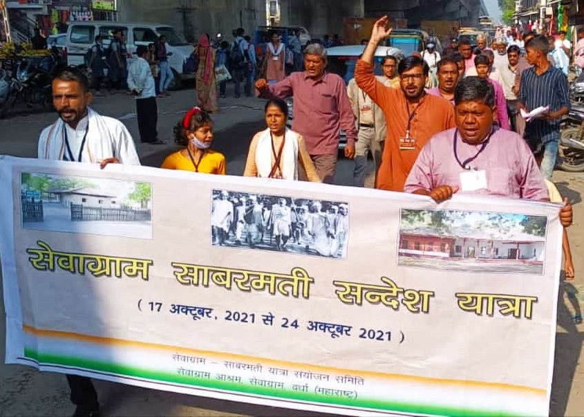 22 अक्‍टूबर 21. साबरमती आश्रम के स्वरूप में बदलाव की कोशिश के विरोध में सेवाग्राम आश्रम (वर्धा) से साबरमती आश्रम (अहमदाबाद) तक चल रही 8 दिवसीय ‘सेवाग्राम साबरमती संदेश यात्रा’ आज छटवें दिन भरूच और बडोदरा पहुँची, जहां यात्रियों का जोरदार स्वागत हुआ।