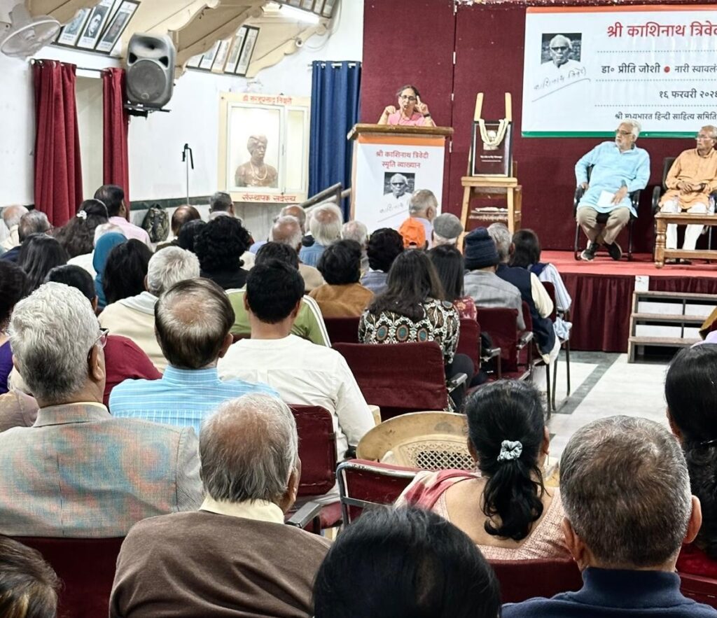 इंदौर, 16 फरवरी। “आधी आबादी को उसका पूरा हक मिलना चाहिए, क्योंकि स्त्री की असली पहचान और स्वतंत्रता उसके स्वावलंबन में है।” यह विचार वर्धा (महाराष्ट्र) से आईं पर्यावरणविद एवं स्त्री-शक्ति के लिए समर्पित सामाजिक कार्यकर्ता डॉ. प्रीति जोशी ने व्यक्त किए। वे श्री मध्य भारत हिन्दी साहित्य समिति एवं संस्था कल्याणी के संयुक्त तत्वावधान में आयोजित चतुर्थ श्री काशिनाथ त्रिवेदी स्मृति व्याख्यान माला में मुख्य वक्ता के रूप में अपने तीन दशकों के सामाजिक अनुभव साझा कर रही थीं।