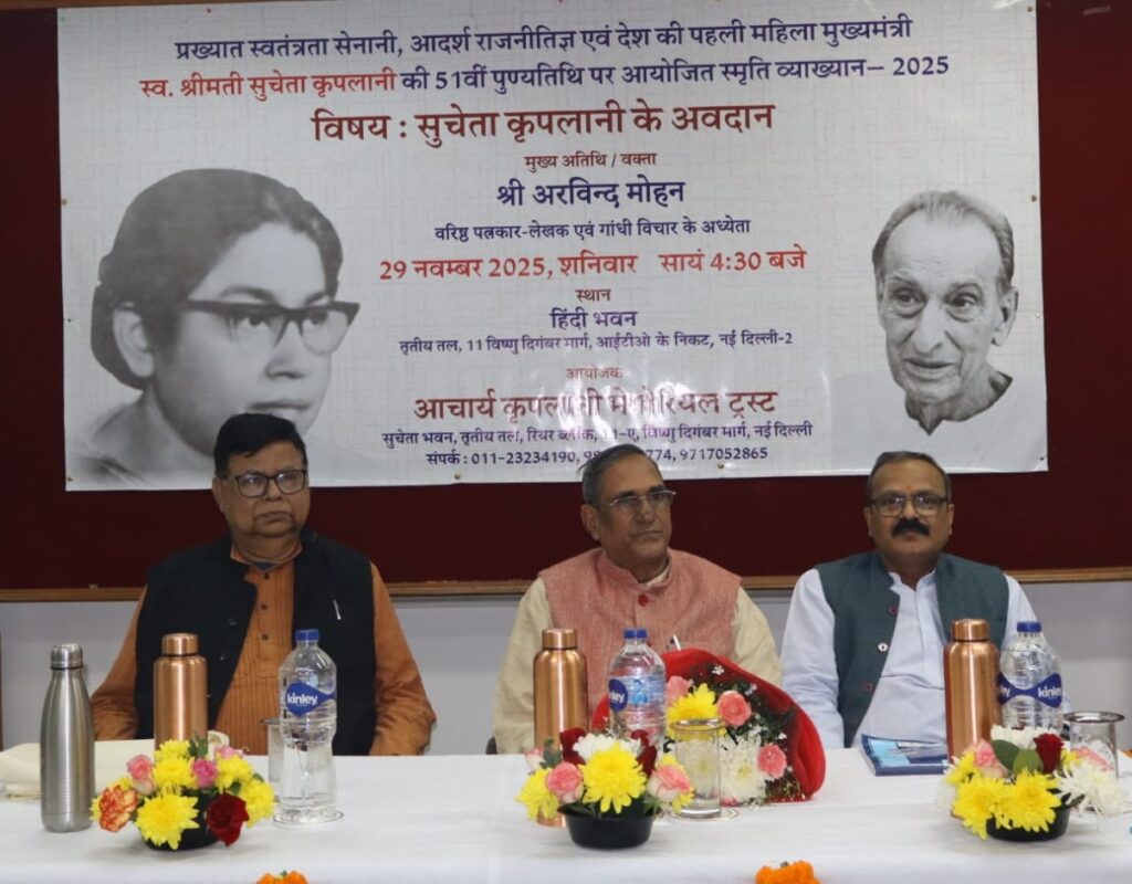 नईदिल्ली, 30 नवंबर। वरिष्ठ पत्रकार, लेखक और गांधी विचार के अध्येता अरविन्द मोहन ने शनिवार को कहा कि राष्ट्र सेवा के लिए स्वतंत्रता सेनानी सुचेता कृपलानी ने अपने व्यक्तिगत जीवन में महत्वपूर्ण बलिदान दिया ताकि राष्ट्रीय आंदोलन का कार्य बिना बाधा के सुचारू रूप से चलता रहे।