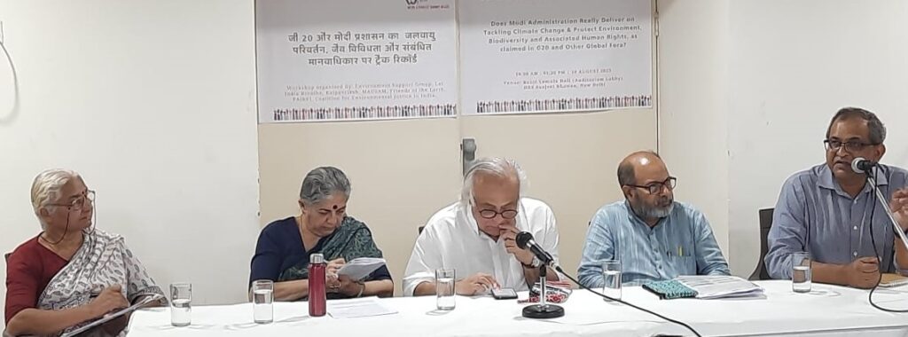वी20 जन सम्मेलन, G20 शिखर सम्मेलन, जो सितंबर की शुरुआत में दिल्ली में होने वाला है, के संदर्भ में आयोजित किया गया था। हालांकि, प्रचार में करोड़ों खर्च करने के बावजूद, जी20 सम्मेलन एक अनौपचारिक अभिजात वर्ग की महासभा बनी हुई है, जो अपनी सभी चर्चाओं को बंद दरवाजे के पीछे रखती है, जिसमें उनके फैसलों और सिफारिशों से प्रभावित होने वाले लोगों की कोई भागीदारी नहीं है। ऐसा प्रतीत होता है कि यह लोगों की वास्तविक चिंताओं के बारे में कम होगा और नेताओं के नुस्खों के बारे में ज्यादा । जबकि, जैसा कि बरगी बांध विस्थापित संघ के राजकुमार सिन्हा ने कहा, “जी20 ने एक बडी जनसंख्या की चिंताओं और मुद्दों को अनदेखा किया है। वी20 जन सम्मेलन ने हमें यह मौका दिया कि हम असमानता, जलवायु संकट, ऊर्जा स्रोत परिवर्तन, श्रमिक अधिकार, सामाजिक सुरक्षा, कृषि के व्यापारीकरण, प्राकृतिक संसाधनों के शोषण और असली विकल्पों और अन्य मुद्दों पर बात करने का अवसर दिया।”